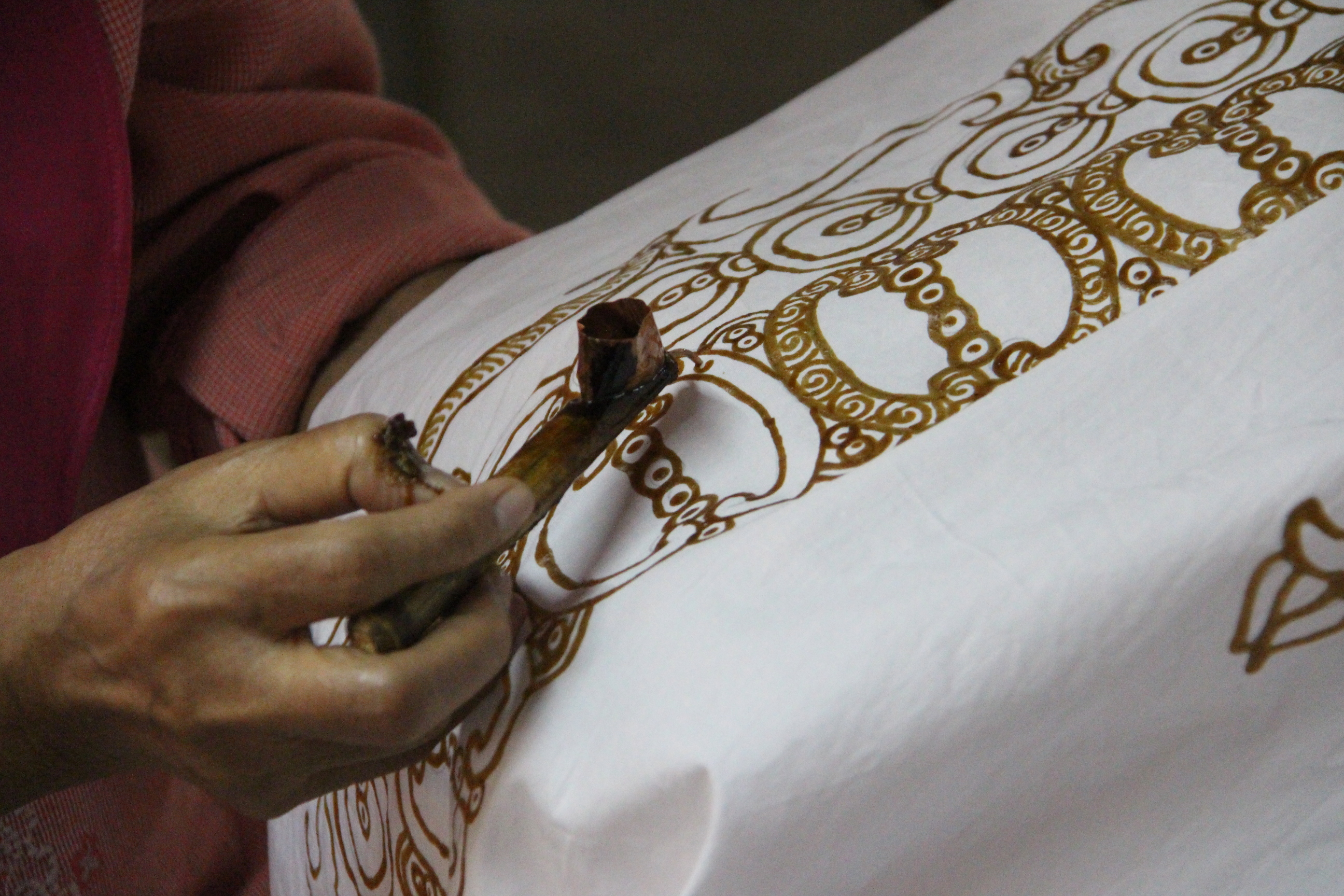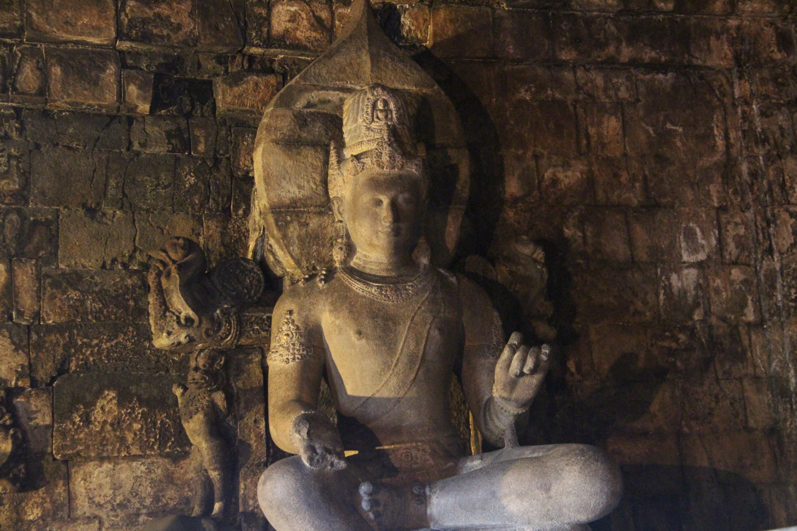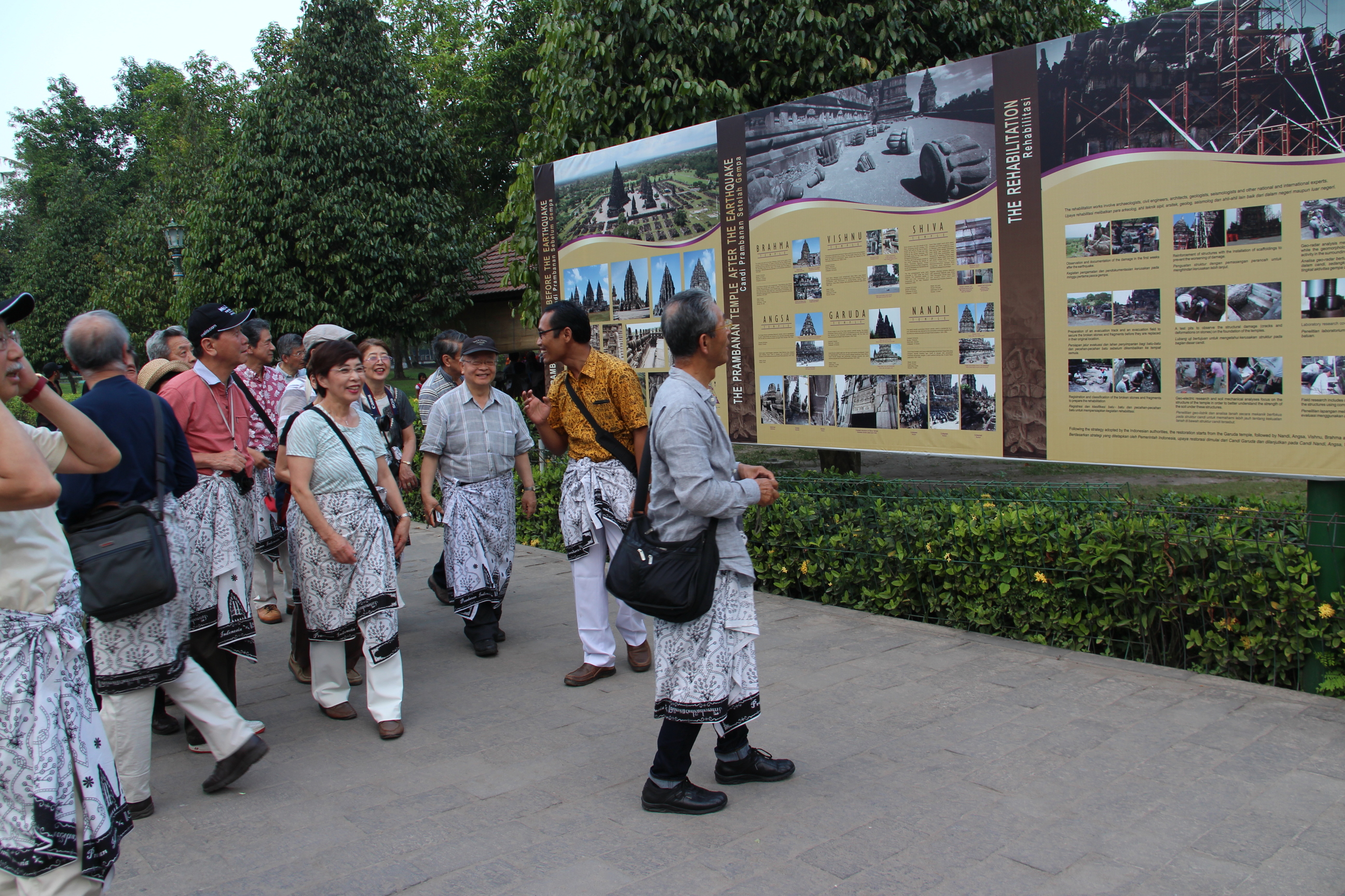 ガイドから、ダジャレを混ぜたボロブドール壁画の解説を聞く