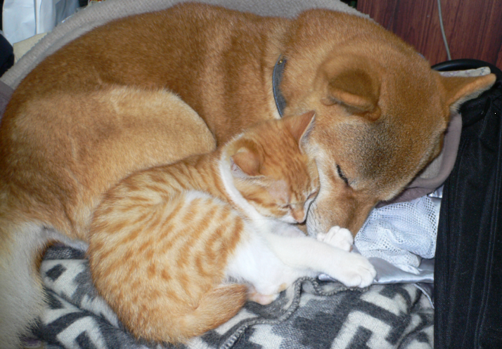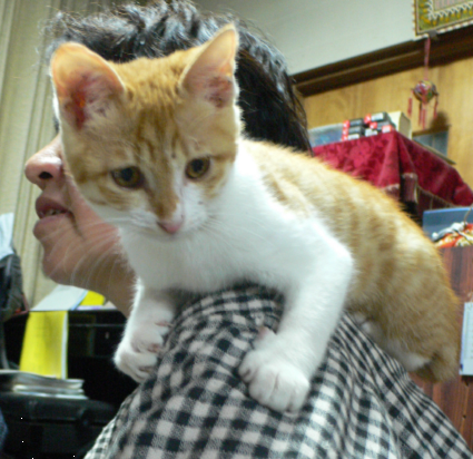 | 悲しい別れとお見合い 先代のナナちゃんは8月28日早朝に行方不明、その日の午後に、近所の豪邸から保健所に電話があり、 首輪を外され野良猫として引き取られたことが分かりました。 これを機会に、その豪邸に独りで 住んでいる中年男の素性や素行を調べ、行方不明の原因を理解しましたが、お父さんも我慢することに したようです。 49日を過ぎてから、お母さんが可愛い子猫探しを始めました。 里親募集のサイトに アクセスし、先代のナナちゃんとそっくりの「茶虎猫」の女の子を探しましたが、中々見つかりませんでした。 しかし、努力の甲斐あって、「茶白猫」の女の子がネットに登場しました。 犬とじゃれ合っている ビデオが掲載されていました。 堪らず電話し、翌日の土曜日にお見合いをすることとなったのです。 人懐こいナナちゃん 翌日の11月14日に、お父さんとお母さんとお姉ちゃんの3人で、荒川の川原近くのお家に伺いました。 部屋に通されると、仏壇に池田大作さんご夫婦の写真が飾られていました。 何でも6匹の猫と1匹の メス犬が飼われているとのことで、別の部屋に隔離されていたナナちゃんが連れてこられました。 ビデオで一緒に映っていたメス犬もやってきましたが、ビデオで見た通り、メス犬がナナちゃんを舐め、 ナナちゃんが反撃していました。 捨てられていたナナちゃんを保護してくれたのはその家のお母さんと、 同席していたお友達の農園の方だそうです。 ナナちゃんは透明なプラスチックの箱に入れられ、 農園の目立つところに置かれていたそうです。 捨てられるまで、きっと可愛がられたのでしょう、 捨て猫集団にも溶け込み、近所の子供に抱かれるとすぐに肩に上っていたようです。 また、有志の方が 届けるおじやを、捨て猫達と一緒に食べていたそうです。 優しい方に助けられました 生後2ヶ月くらいの900グラムの子猫ですから、急な寒さが堪え、1週間もすると風邪を引き、目ヤニと 鼻汁を垂れ、可哀相な猫に変身していったようです。そこで、農園の方がナナを預かってくれた方に相談し、 まずは病院に連れて行き、風邪治療の注射を打ち、蚤退治の薬を呑ませたそうです。 そして、さっそく 翌日にはビデオ撮影して、直ちに、里親募集のサイトに載せたとのことです。 すると、すぐにお母さんが 見つけ、お見合いをすることになった次第です。 ナナちゃんを気に入ったお父さんとお母さんは、 お土産を沢山いただき、ナナを紙袋に入れ、電車に乗って連れて帰りましたが、その間、ナナちゃんは 一言も声を発しませんでした。 小西家に帰宅後、僕との相性を心配して、大きな猫の小屋に入れられました。 すると、ナナは初めて「嫌だ」と泣き声を上げました。 その声は嗄れていて、ガラガラ声でした。 ナナちゃんは美人だけれど、声は悪くて、やはり天は二物を与えず、ということなのかなと思っていましたが、 暖かくしてやり、風邪が治まると、大変可愛い声で鳴くようになりました。 僕の恋人になりました 僕は忽ちナナちゃんに惚れ込みました。 いつもナナちゃんの傍に居て、ナナちゃんを舐めていたいのです。 このため、ナナちゃんのお尻はいつもピカピカに光っています。 僕はナナちゃんをいつも独占しておきたいので、 お父さんがナナちゃんを抱っこすると、嬉しくありません。 ナナちゃんとお父さんの間に入りこみ、 ナナちゃんを奪い返そうとします。 ナナちゃんが来るまで、僕はお母さんとお父さんの布団の間で寝て いましたが、ナナちゃんの猫ベッドが隣屋の机の上に置かれたため、少し寒いのを我慢して、僕はナナちゃんを 見ながらその部屋の床で寝ていました。 しかし、最近はもっと寒くなり、ナナちゃんもお父さんの布団に 潜り込んで寝るようになったので、僕も安心してお母さんの布団で暖かく寝ています。 しかし、ナナちゃんは 夜行性で、深夜の2時くらいまで部屋を飛び跳ねていますので、僕も眠さを堪えて、一緒に走り回ることもあります。 以前の日記