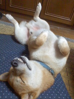 | 毎朝繰り返される出来事 我が家で一番の早起きは奈々ちゃんです。 4時半くらいから、お父さんとお母さんが 寝ている部屋内を歩き回り始めます。 僕は5時近くまで我慢して寝ていますが、時間がくると、 お母さんの枕の端に寝転び、起こそうとします。 お母さんは起きると、すぐに僕を散歩に連れて行ってくれますが、奈々も「一緒に散歩したい」と、 玄関の戸の前で待っています。 しかし、奈々ちゃんが遠出する癖を つけて欲しくないので、餌をやり、その隙間に、僕と母さんだけで散歩に出かけます。 奈々は朝ごはんを食べ終わると、まだ寝ているお父さんのところへ行き、不満の声を上げ 泣き続けます。 これは毎朝繰り返される出来事です。 喧嘩を仲裁してくれる奈々 正直に言って、僕は頭が良くなく、大好きなお父さんと喧嘩することがあります。 お母さんとはひたすら仲良しの関係ですが、何故だか、お父さんとは戦うのが好きなのです。 人形を奪い合いながら戦うことが多いのですが、しばらくすると本気な戦いに なります。 お父さんも大人気ないと言うべきか、本気で僕を転がし押さえつけようとします。 僕とお父さんが本気で戦い始めると、奈々が割り込んできます。 すると、お父さんは 奈々を抱き寄せ、幸せそうな顔をします。 奈々とお父さんが仲良くし始めると、 まだ戦い続けたい僕は居場所がなくなり、隣の部屋へ行き、しばらく独りで過ごします。 喧嘩を収めてくれるのはありがたいですが、奈々ちゃんがお父さんと仲良くすると、 僕は仲間外れの気分になり悲しいのです。 いつも家族と一緒に居るのが好きなのだから。 原発事故と家庭菜園 3/11に大地震が起きた時、お母さんは田舎へ帰る飛行機の上でした。 お父さんは、 春野菜を植えるため、近所の畑で耕していました。 僕は奈々と2人で怖い思いを して玄関で待っていたら、お父さんが帰ってきました。 すると、再び大きな地震が起こり、 僕とお父さんは外に飛び出し、収まるのを待ちました。 地震は大嫌いです。 夜に地震が起きると、寝ていてもすぐに立ち上がって、地震が収まるまできょろきょろします。 現在、お父さんは秋野菜を育てるための、堆肥を探しています。 どの店も堆肥の 販売を中止にしているようです。 お父さんは堆肥をつくるためにコンポスト(底が抜けた ゴミ容器)を使っていますが、完熟堆肥にするには2年くらいかかるそうです。 今年の秋は堆肥が足りないと騒いでいます。 棟上げ 今日、我が家の離れの棟上げ式を行いました。 朝から家の柱を建て始め、昼過ぎには 離れ家の様子が概ね出来上がりました。 午後4時から、宮司がやってきて、無事の建設と お家の繁栄を祝ってくれました。 宮司さんはいかにも平和なお顔をされていて、 カラフルな服装や飾りつけもあり、幸せに溢れたイベントになりました。 建築に関わる人も 皆ニコニコとしていました。 棟上げ後、ご近所に心づけのお菓子を配り、騒音等でご迷惑をおかけする ことのお詫びをしました。 この新しい離れ家は、現在の家と(短い)渡り廊下で結ばれ、 大きな家になります。 僕はいつもお母さんの傍にいるのですが、奈々は探検家で、どの部屋の どこで寝ているかも分からず、さらに外出もしたがるので、お母さんが奈々を探す時間は増えそうです。 以前の日記