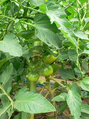 | 奈々の部屋=お兄ちゃんの部屋 お兄ちゃんは2階の東南角部屋8畳に住んでいましたが、現在は、 職場のある川崎にアパートを借り、週末だけ練馬の家に戻ってきて、 その部屋で寝起きしています。 このため、お兄ちゃんの部屋は 現状維持としていますが、奈々の爪磨き台やトイレも置かれ、お兄ちゃんの ベッドの上で奈々は昼寝もしていまして、実質的には奈々の部屋とも言えます。 この部屋は日照時間も長く、真冬でも晴れた日は20℃を超える、最も温かい部屋なので、 お父さんは野菜の苗を育てるために使っています。 現在も、出窓部分で、枝豆やパセリの 苗を育てていますが、奈々は出窓から外を眺めるのも好きなので、 お父さんの苗床を避けながら、出窓部分を歩いています。 出窓の手前には お兄ちゃんの机も置かれていますが、ここに奈々のための猫ベッドも置かれています。 僕は決して机の上には上がりません。 右の写真では、お父さんに抱えられ、無理やり、 机の上に置かれたので、どのようにして降りたらよいか悩んでいるのです。 結局、お父さんに抱えられ、降ろしてもらいました。 僕は飛び上がることも、飛び降りることもできず、高所恐怖症なのです。 この点、奈々は天才です。 トマトの育苗 トマトは乾燥し=夜は冷え込むペルーを原地産とし、原種はミニトマトよりも ずっと小さくて美味しくなかったとのことですが、品種改良が進められ、 湿度の高いわが国でも大きくて美味しいトマトができるようになりました。 トマトは、一旦育つと乾燥にも寒さにも強い植物ですが、発芽や育苗時には弱く、 15~25℃に保つことが求められます。 できるだけ早く(初夏)からトマトを収穫するために、 お父さんは、夜中は保温して、寒い時からトマトの苗を育てています。 今年の場合、 (1)2/29に、大きい/鈴虫の飼育籠(20 x 38 x 30 cm)の中に、トマトの種を播いた、15個の小さな育苗ポットを入れ、次に、この飼育籠を、底に電気アンカ(60W)を入れた段ボール箱に収めます。 そして、全体を毛布で包みました。 このようにすると、深夜でも15℃以下には下がりませんでした。 (2)3/5に(5日間で)発芽しました。 発芽後は、日中は出窓に置いて太陽に当て、暗くなると(1)の段 ボール箱に戻しま した。 (3)4/13に、既に20cmを超える高さに育ったので、ビニール・トンネルの農地に移植しました(21粒 の種を播きました が、100% 育ちました)。 (4)現在(5/31)の様子を右の写真に示しました。 幹は太くなり、既に実が付いています。 また、甘いトマトをつくるためには、ハウス等で雨避けし、土地を乾燥させることが必要ですが、 家庭菜園では実現が難しいです。 野菜もお酒が好きです 野菜は生き物で、お酒等に含まれる有益なアミノ酸や、有益な微生物(ex. 乳酸菌) を多く含む健康な土地では元気に育ちますが、一方、(完熟でない)未発酵の肥料が加えられ、有害な腐敗菌が増殖した土地で は、野菜も病気に掛 かることとなります。 お酒を50倍程度に薄めて庭木に与えると、その庭木は元気になることが知られていますが、野菜作りにも(お酒のような)発酵 肥料を与えること が重要なのです。 つまり、野菜にとっても、お酒は「百薬の長」なのです。 有益なアミノ酸や乳酸菌を増やすために、通常、米ぬか等を完熟発酵させることとなりますが、発酵には2種の方法があります: (1)好気性発酵:かき混ぜる等により、空気(酸素)に積極的に触れさせ、アルコール等をつくる。 (2)嫌気性発酵:密閉した容器で発酵させ、メタンガスを発生させる。 いずれの発酵方法でも、発酵が始まれば発熱しますが、発酵開始時には加温し、発酵を加速することが望ましく、家庭で容易に発 酵させることが可 能な方法は(1)の好気性発酵です。 好気性発酵では、最初に、 ①麹菌が働き、(甘酒の匂いを出し)1~3日で澱粉やたんぱく質を分解し、糖を作ります。 次 に、 ②4~7日で乳酸菌が働き、(少し臭い匂いを出し)40℃を超える熱を発生、腐敗菌等の成長を抑 制します。 最後 に、 ③酵母菌が働き、(お酒の匂いを出し)アミノ酸やアルコールを作ります。 米ぬかボカシ肥料の作り方 有機肥料を微生物で発酵させたものをボカシ肥料と言います。 ボカシ肥料は園芸店で(1000ccで500円程度)売られていますので、これを購入するのが一般的ですが、 もし園芸店で見つからない場合は、(甘酒をつくる)米麹、、加熱処理していない (カスピ海)ヨーグルト、パン作りに使う(レーズン)酵母を、(ボカシ肥料の代わりに)米ぬかに加えればよい。 なお、レーズン酵母の作り方等はインターネットで容易に見つかります。 米袋(30Kg)に一杯詰められた米ぬかは、米屋で100~300円で購入できます。 ボカシ肥料を作るのに必要な機材は、上記に加え、 (1)米袋一つ(交換用) (2)段ボール箱 (3)(段ボール箱の底に置く)電気アンカ(60W) (4)毛布1枚 なお、(2)~(4)は トマトの育苗 で使用したものです。 米袋一杯の米ぬかを、交換用米袋に移しながら、ボカシ肥料(茶碗1杯程度)と約2リットルの 水